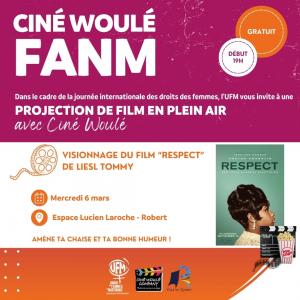 Dans le cadre de la journée internationale des droits des femmes l'UFM vous invite à une projection en plein air du film "RESPECT" mercredi 6 mars 2024 à 19h à l'espace Lucien Laroche (rue Vincent Allègre) au Robert.