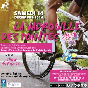 Dans le cadre de l'inauguration de l'Antenne Municipale de Développement et de Cohésion Sociale, invite les femmes à participer à "LA VADROUILLE DES POINTES" le samedi 14 décembre 2024 avec la collaboration des associations Aktiv Girls et Jeunesse Cycliste 231