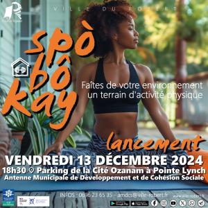 Dans le cadre de l'inauguration de l'Antenne Municipale de Développement et de Cohésion Sociale, participez au lancement de l'activité "SPÔ BO KAY" le vendredi 13 décembre 2024 à 18h30 sur le Parking de la Cité Ozanam à Pointe Lynch.
