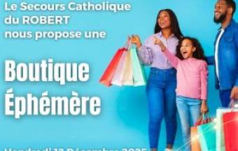 Le secours catholique du Robert vous propose une boutique éphémère le vendredi 12 décembre 2025 de 7h00 à 15h00 à la salle Abbé Morland (derrière l'église Sainte Rose de Lima du Robert).