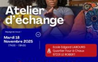 L'association Martinique Jeunesse Solidarité vous invite à son atelier d'échange sur le thème "Comment gérer les conflits au sein du foyer ?" animé par Mme BOROT Murielle (Médiatrice familiale) Mardi 18 novembre 2025 de 17h à 19h à l'école Hector Sainte-Rose de Mansarde.